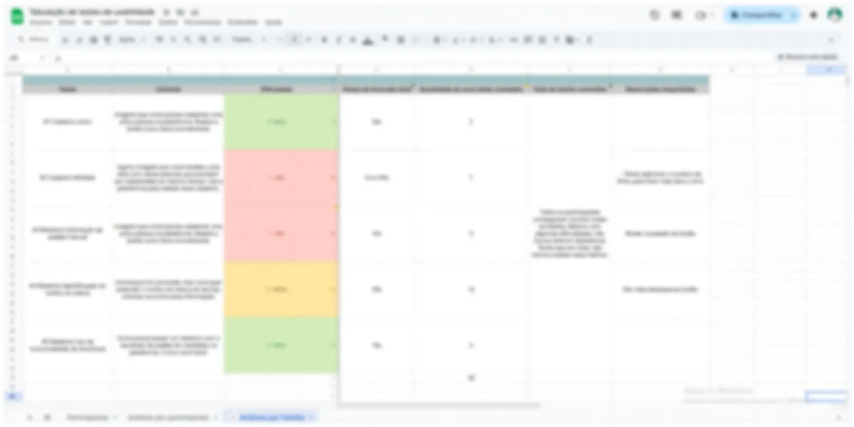 A primeira rodada de testes foi fundamental para validar nossas hipóteses iniciais e observar como usuários com perfil operacional interagiam com a nova estrutura da plataforma. O foco esteve nas tarefas mais recorrentes da rotina dos operadores, incluindo busca, filtragem e análise de relatórios.